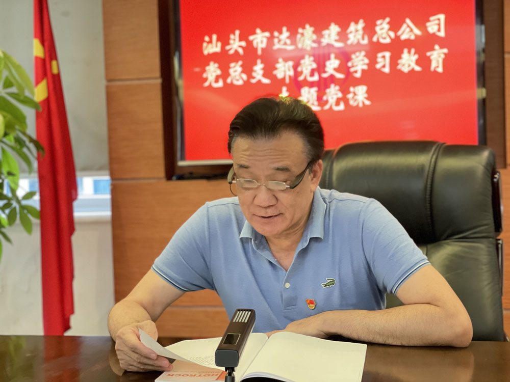 2021-08-02為深入貫徹落實上級黨委黨史學習教育安排部署,進一步教育引導黨員干部學史明理、學史增信,學史崇德,7月30日下午,公司黨總支部書記、總經理黃邦平以《感悟百年黨史 汲取奮進力量 凝心聚力推進公司高質量發展》為題,為黨總支部及下屬基層黨支部在汕黨員講授了一堂精彩生動的黨史學習教育專題黨課。
